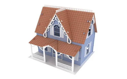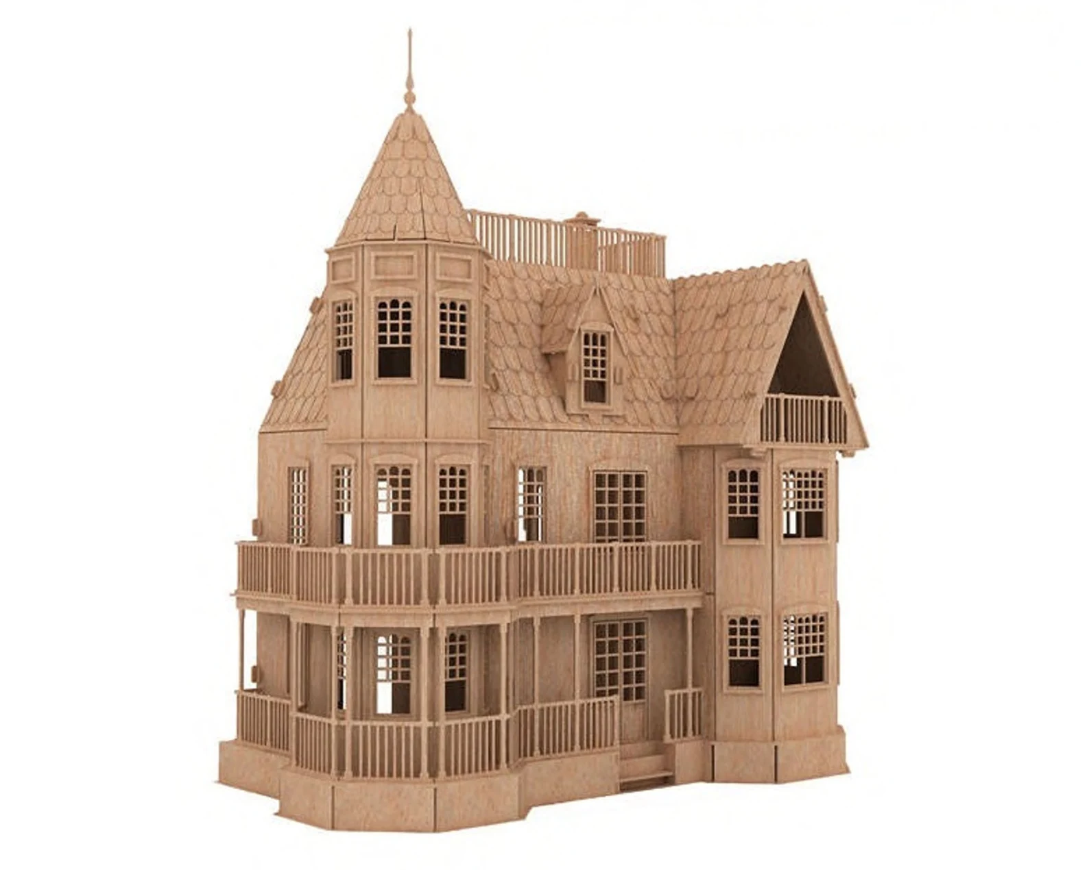 Intricate multi-room dollhouses and buildings with porches, balconies, and removable sections — designed to scale cleanly and assemble accurately.